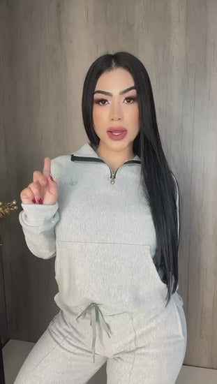 Disfruta de la comodidad y el estilo con este precioso conjunto de dos piezas confeccionado en felpa stretch de alta calidad, ideal para los dÃas frÃos.