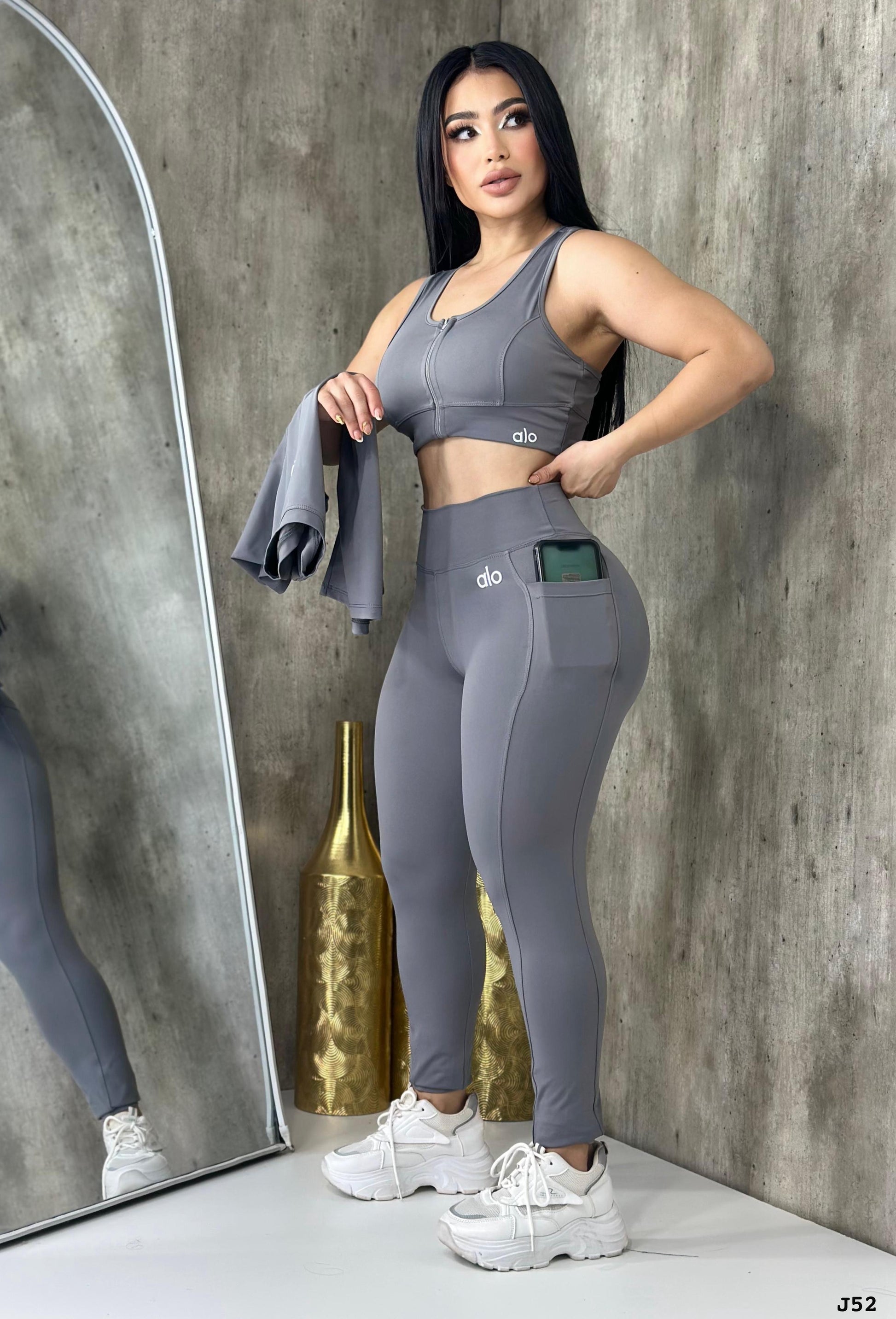 • 🎀 Incluye: leggings con bolsa lateral, top con cierre frontal y blusa oversize