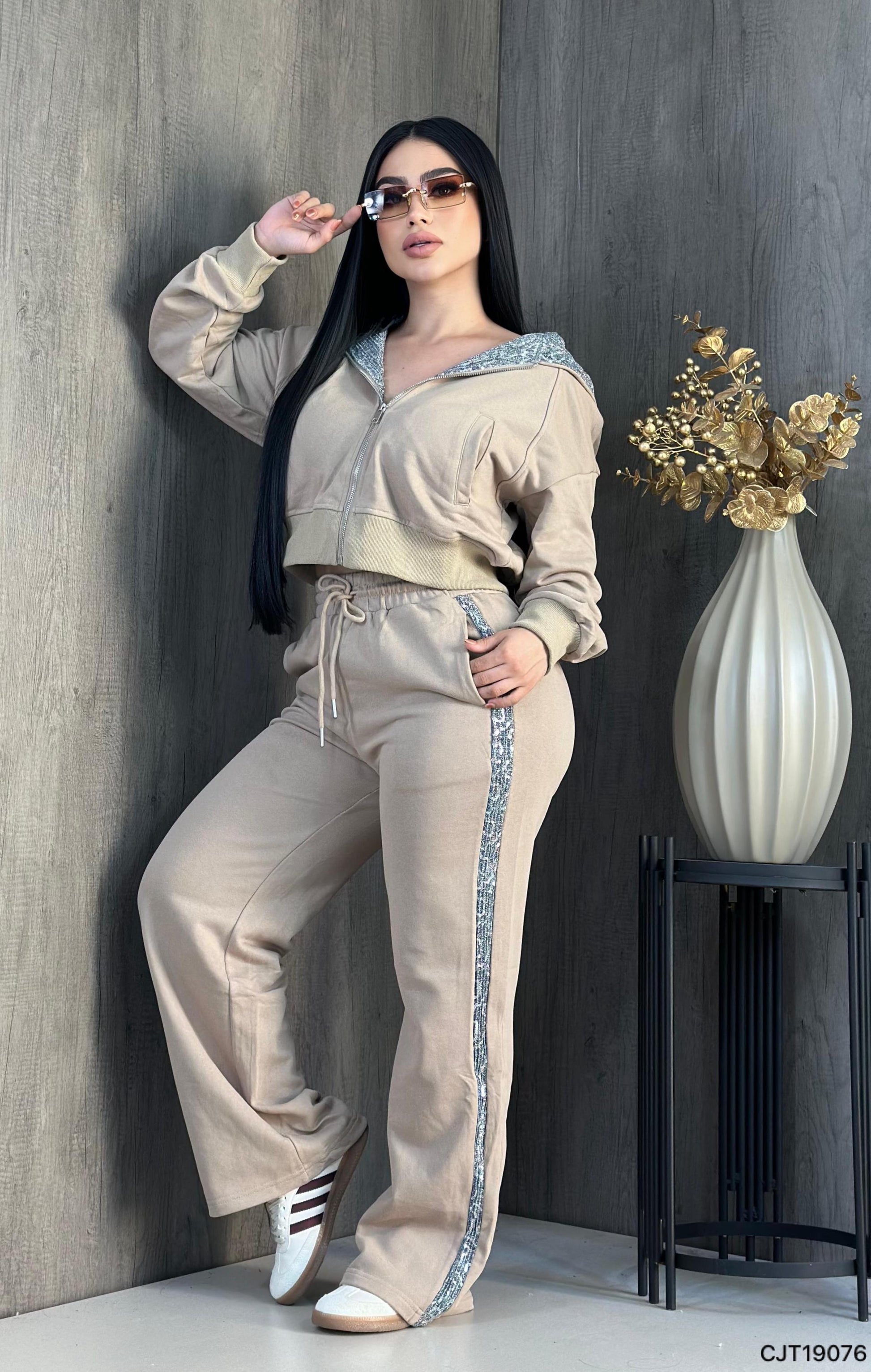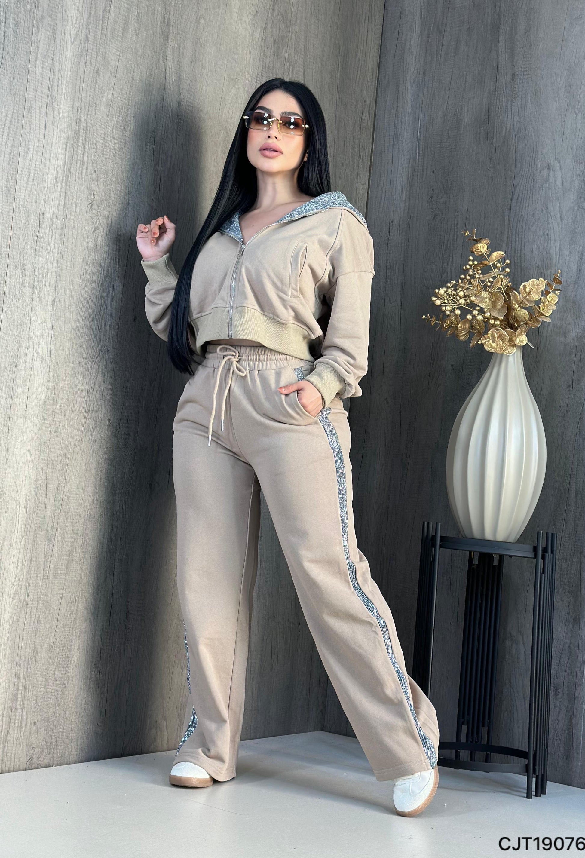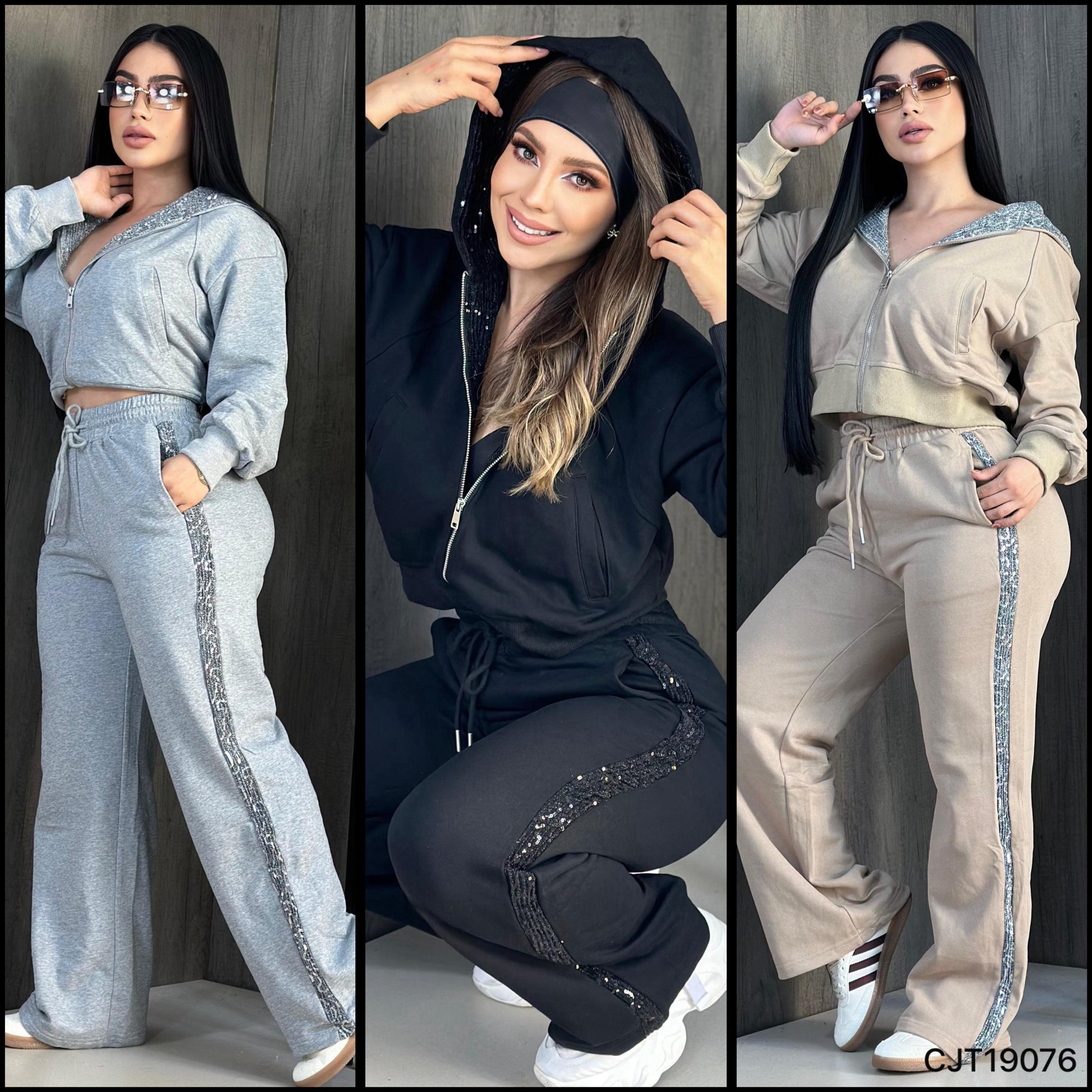 ✨ Sequin accents on the hoodie and pant leg for a sparkling touch