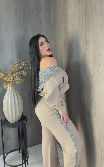 Shine with elegance and warmth in this premium-quality two-piece outfit featuring beautiful sequin details.